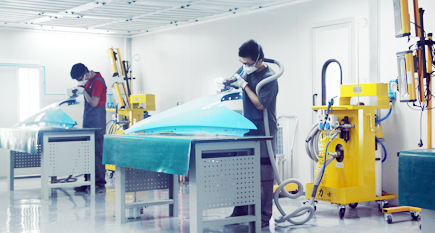 過(guò)去,手工打磨是漆工施工的惟一方法,隨著工藝的改進(jìn)這種方法又可分為最初的手工水磨和后來(lái)的手工干磨。不過(guò)手工打磨的工作效率低,勞動(dòng)強(qiáng)度大,污水造成的環(huán)境污染,而且容易產(chǎn)生橘皮,氣泡,沙痕,銹漬等質(zhì)量缺陷。隨著科技的不斷進(jìn)步,得心應(yīng)手的專業(yè)研磨設(shè)備和工具也日漸成熟,無(wú)塵干磨因此誕生并得到迅速推廣,在歐美的很多國(guó)家,傳統(tǒng)水磨已被徹底淘汰,取而代之的就是無(wú)塵干磨, 與其他鈑噴車間不同的是,地面干凈整潔,而且看不到水漬。